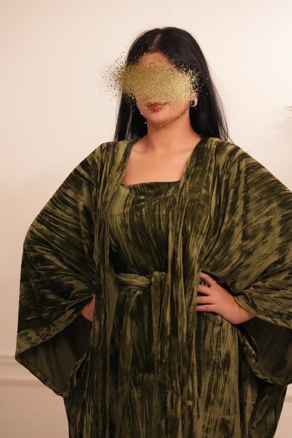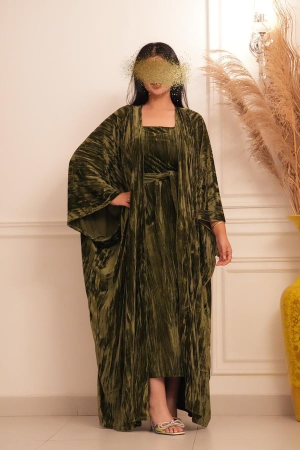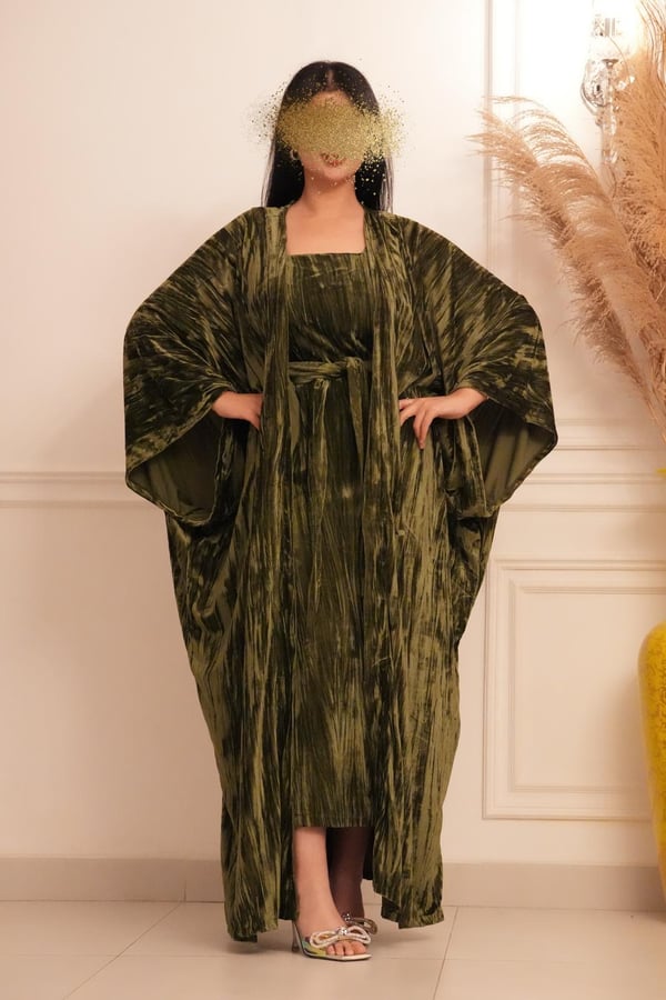 2 pieces velvet caftan Besht with belted dress Size : S fits to XL free size Length : 54 inch