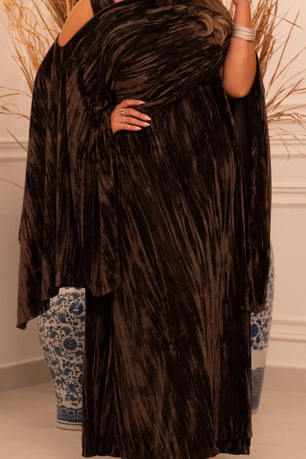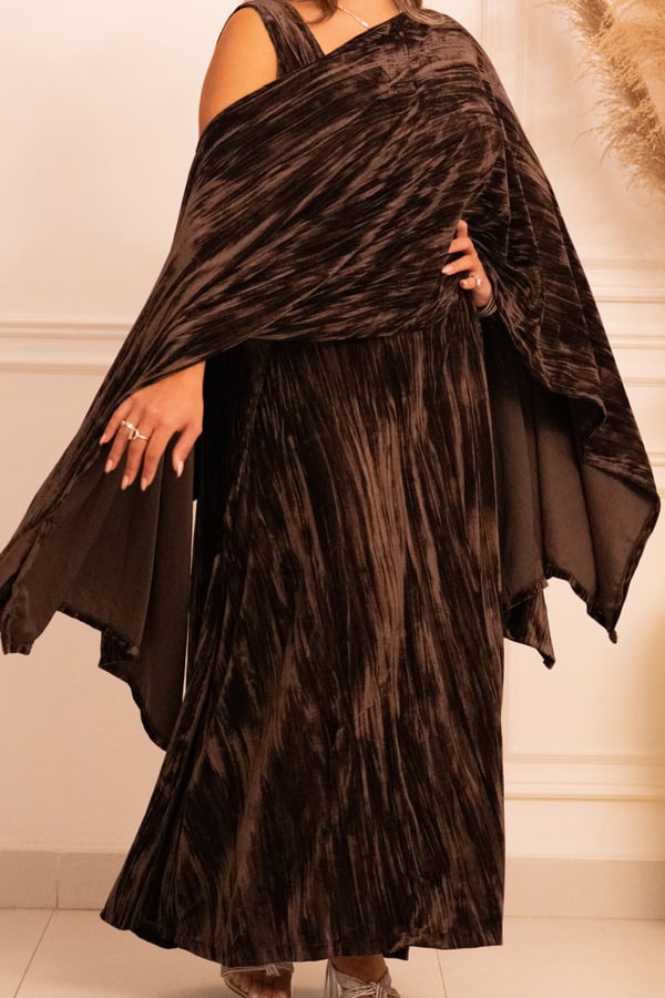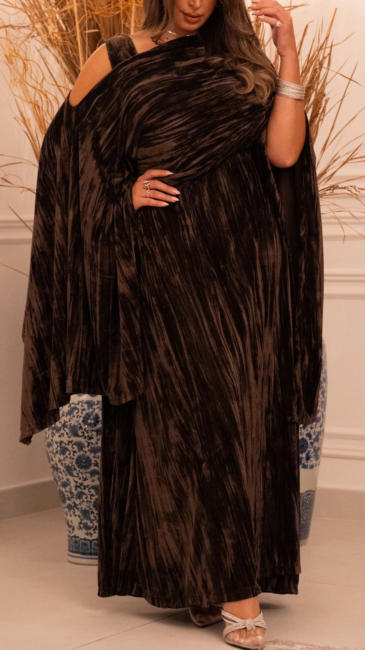 2 pieces off shoulder Velvet caftan with inside belt and scarf Free size S to XL length 53 inch